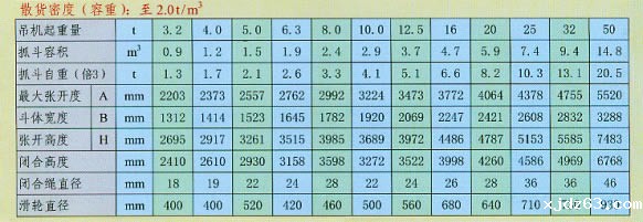 双索双瓣抓斗抓取比重为0.4-3.2t/m3各种粒度均匀的散货,通常为粮食、煤炭、水泥、黄砂石子、矿粉、矿石、盐等。抓斗容积有0.5至10立方。