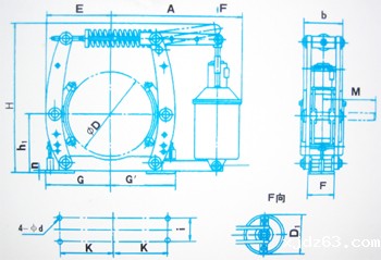 制动器型号 Brake Type | 制动力距 Torque(N.m) | 退距 Clearance | A | b | D | D1 | d | E | F | G | G’ | H | h1 | i | K | H’ | L | M | n | 重量 kg | YWZ3B-160/18 | 80-140 | 0.5 | 345 | 65 | 160 | 137 | 14 | 160 | 90 | 155 | 155 | 378 | 132 | 55 | 130 |