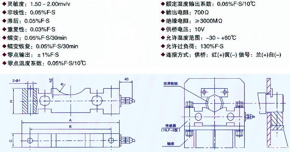 该传感器主要安装于定滑轮轴下,也可以用于平衡滑轮等其他形式的轴下,该传感器具有较大接触面,因而具有较好的稳定性,常用于起重限制器的传感器,是各类起重机设备安全保护装置和自动化控制的理想选用产品。咨询型号标注例如:“HLF-3-10t”。